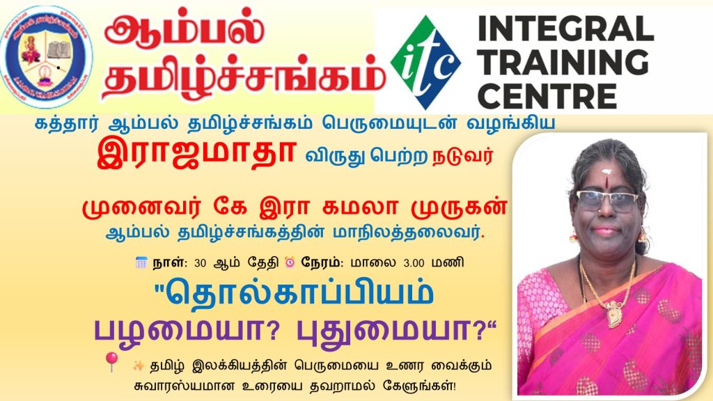 ஆம்பல் தமிழ்ச்சங்கம் வழங்கிய உயரிய விருதான இராஜமாதா விருதாளரும், ஆம்பல் தமிழ்ச்சங்கத்தின் மாநிலத் தலைவருமான, முனைவர் கமலா முருகன் அவர்கள் தலைமையில்
