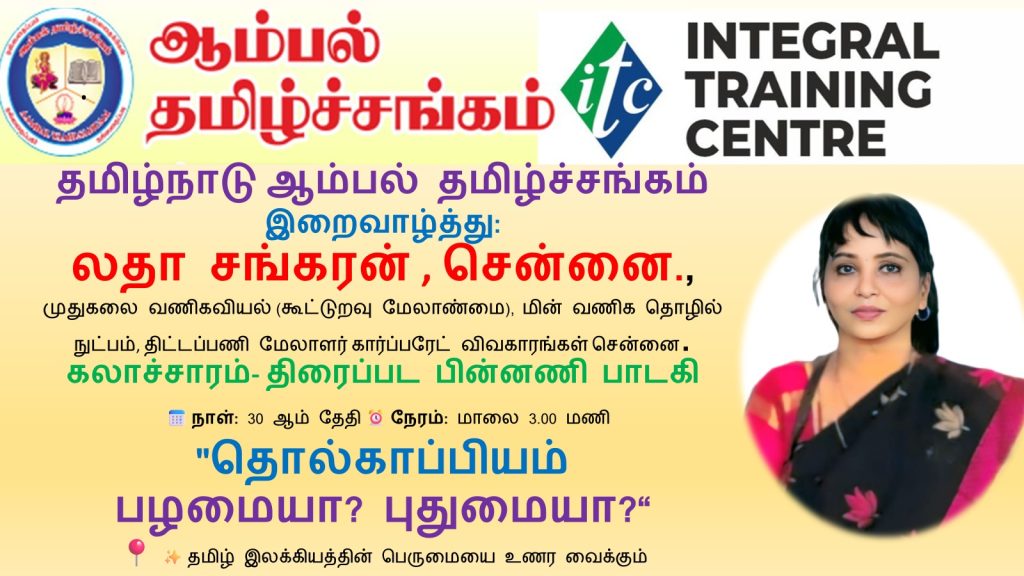 Best Teachers of Tamil Nadu – Mrs. S. Subbulakshmi (AAMBAL Krishnagiri District – Hosur) A Tribute by ITC Junction | Integral Training Centre | Aambal Tamil Sangam. Compiled & Introduced by Dr. Ravi Govindaraj