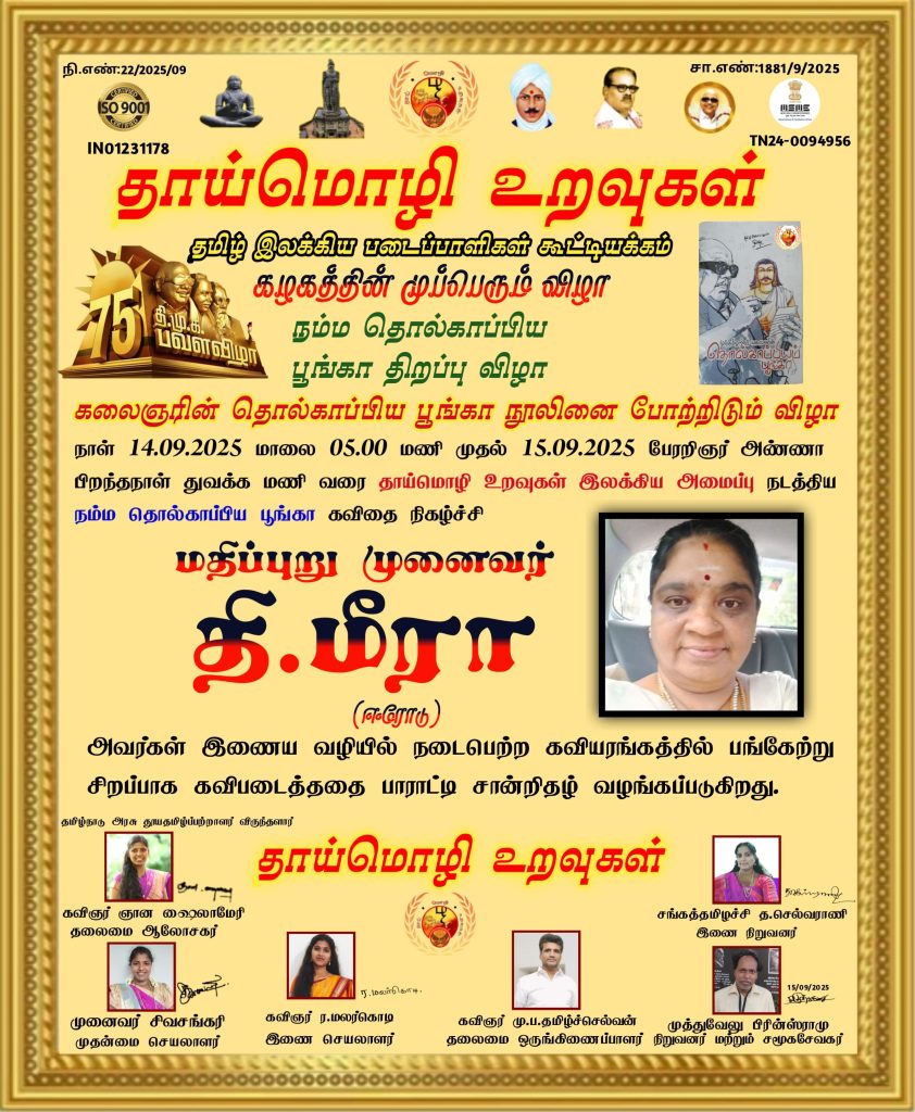 - Author of “Meeraavin Muththana Kavithaigal” (Poetry Collection).