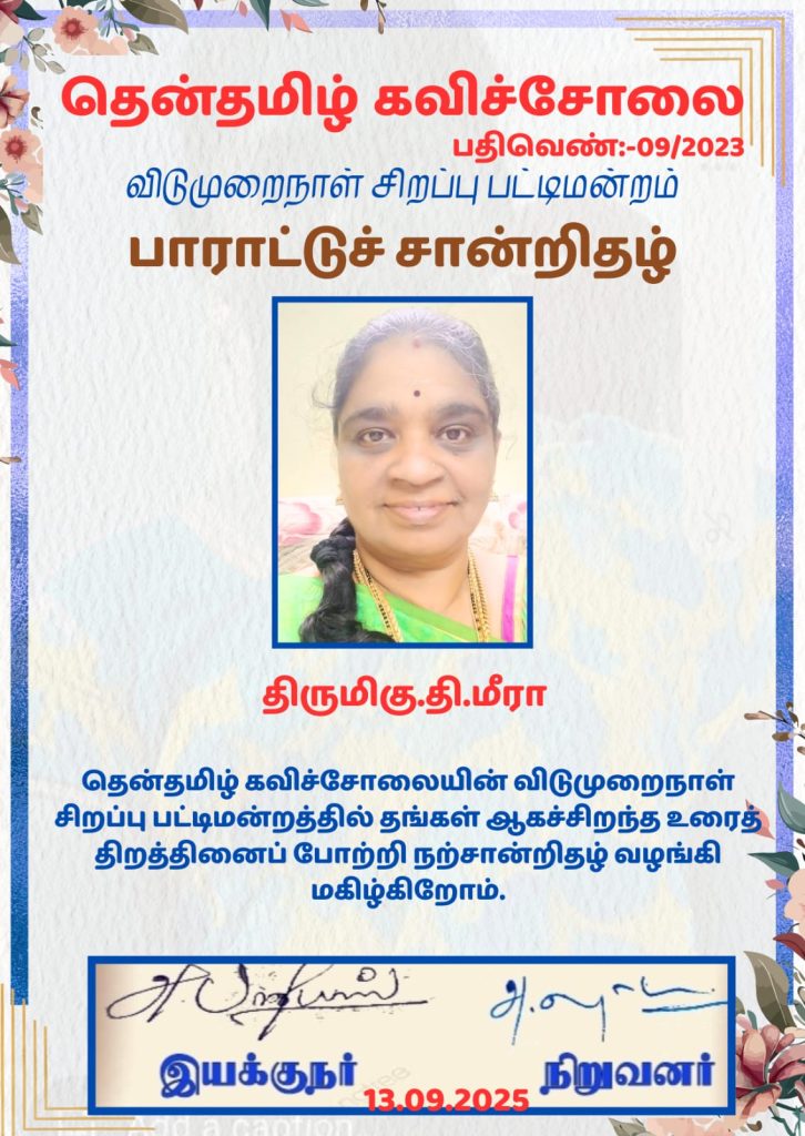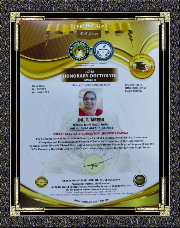 “Education is not the filling of a vessel, but the lighting of a lamp — and T. Meera keeps that lamp burning brightly for generations.”